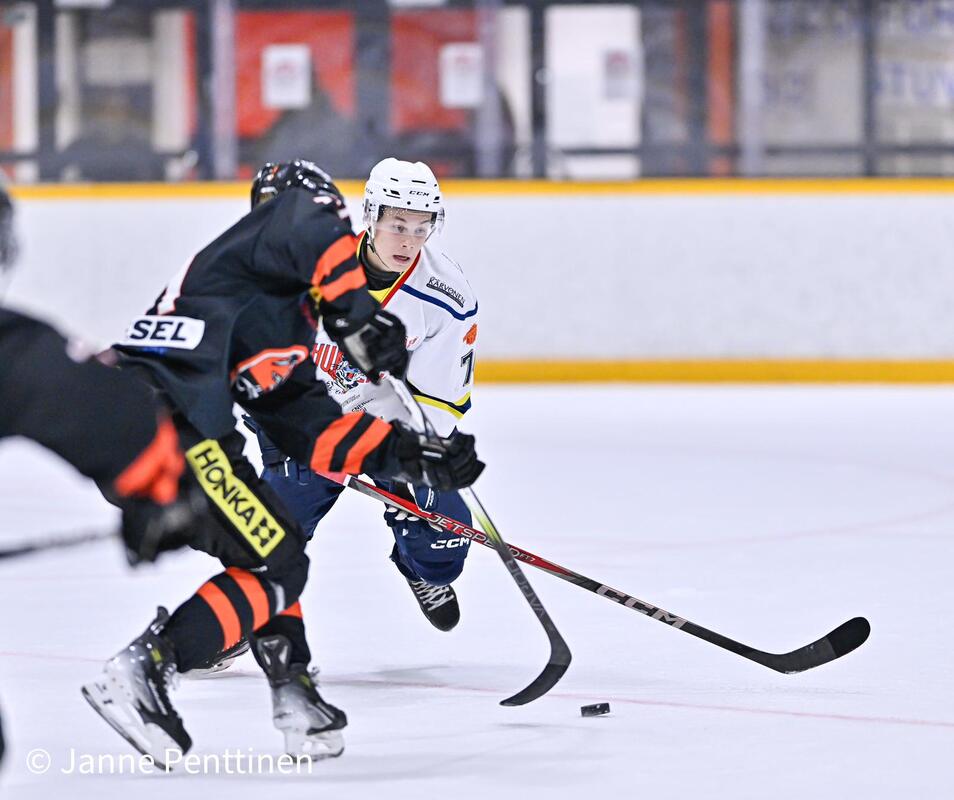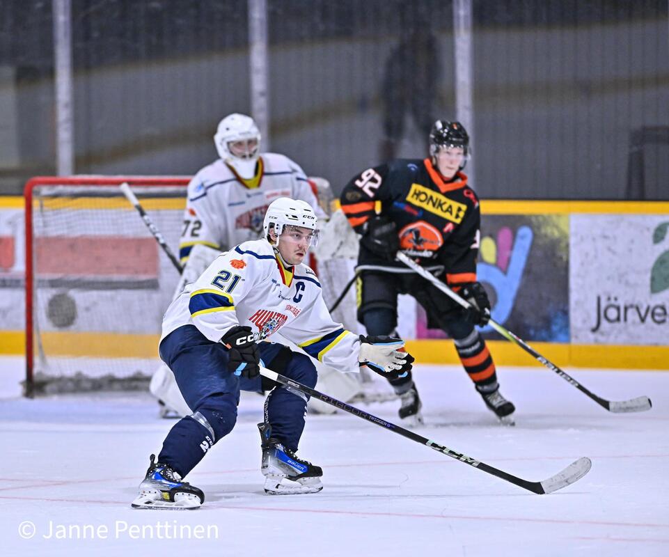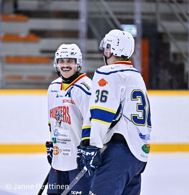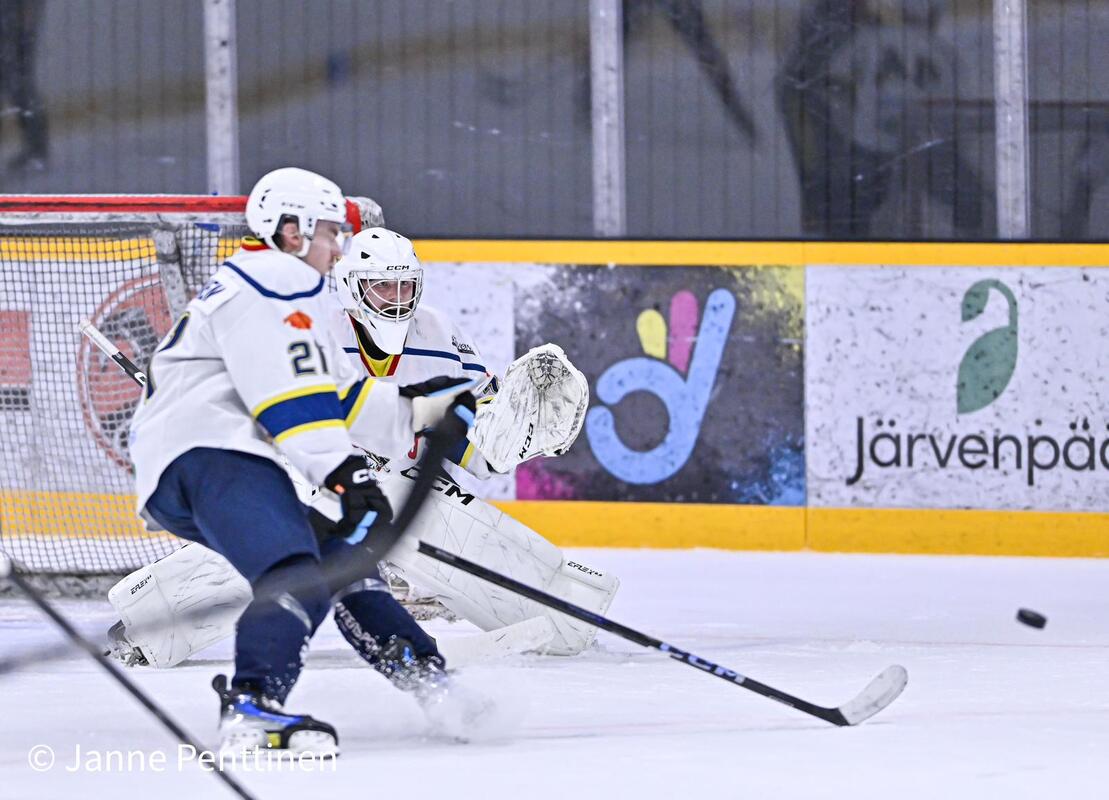Porvoolaisten ainokaisesta vastasi kolmannessa erässä #23 Valtteri Siikala. "Haukat oli kova tänään ja parempi voitti. Ei päästy missään vaiheessa pelin päälle. Sunnuntaina uusi yritys Lappeenrannassa." -päävalmentaja Pekka Siikala Huntersin maalilla #72 Oskari Hokka 34 torjuntaa. Kuvat otti Janne Penttinen |