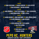 Porvoon Huntersin kokoonpano otteluun PEPO HC - Porvoon Hunters. Kiekko tipahtaa jäähän Lappeenrannassa klo16:00.