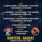 Porvoon Huntersin kokoonpano illan otteluun! Porvoon Hunters - Järvenpään Haukat Kokonniemen jäähallissa tänään klo18:30!