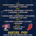 Porvoon Huntersin kokoonpano illan Hunters - Pyry-otteluun