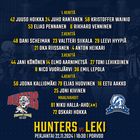 Huntersin kokoonpano illan Hunters - LeKi-otteluun!