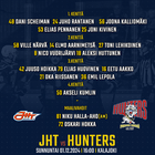 Porvoon Huntersin kokoonpano illan otteluun. JHT - Porvoon Hunters Kalajoen jäähallissa klo16:00
