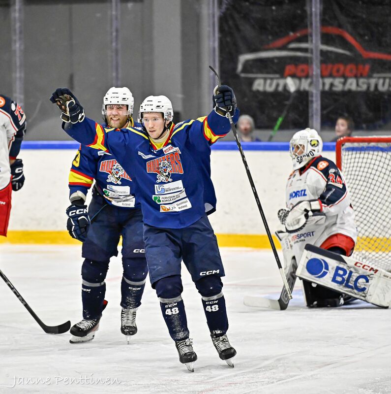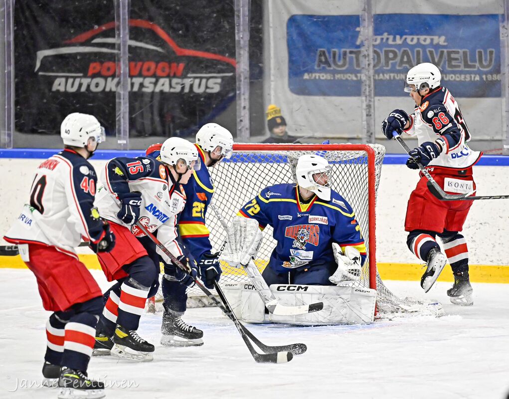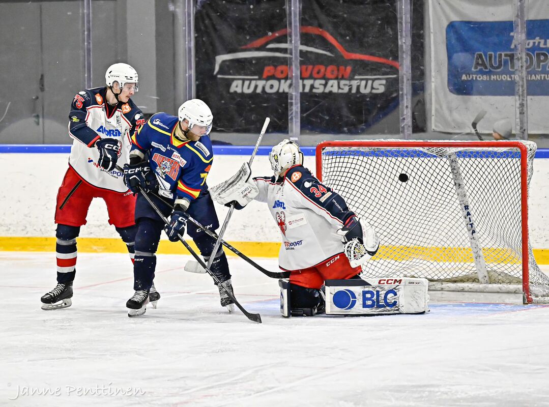 Eilinen peli Titaaneja vastaan taisi painaa hieman jaloissa. Lopputulos Hunters - SaPKo 1-5. Oskari Hokka Porvoolaisten maalilla 14+18+18=50 torjuntaa. Ensi viikolla toivottavasti sairastupa tyhjä ja joukkue levänneenä vierasotteluihin Pyryä ja S-Kiekkoa vastaan. Kuvat otti Janne Penttinen