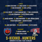 Kokoonpano illan otteluun! S-Kiekko - Porvoon Hunters Seinäjoella klo16:30