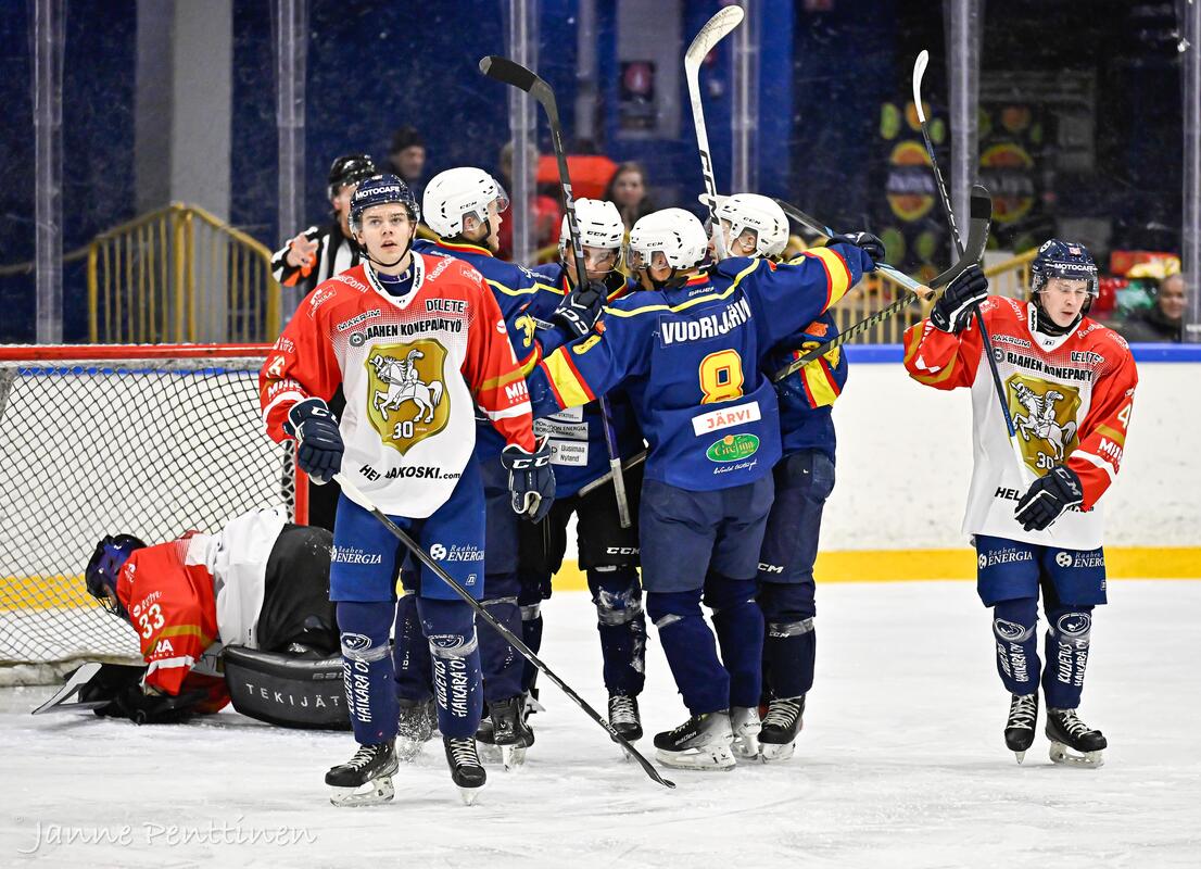 Hunters - Raahe-Kiekko 10-0!!! PORVOON HUNTERS SUOMI-SARJAN PLAYOFFS-PELEIHIN!!! Hunters - Raahe-Kiekko 10-0!!! Aamulla ei viitsinyt mainita mitään teoreettisista mahdollisuuksista jatkopelehin, kun se olisi vaatinut Riemulta isonumeroista tappiota kotona ja Huntersilta isonumeroista voittoa Raahesta. Näin siinä kuitenkin kävi. Aivan mahtavaa!!! Kiitos joukkue ja kiitos kotiyleisö!!! 1-0 66 TUOMINEN Eeti (36 LEPOLA Emil 24 RANTANEN Juho) 2-0 42 HOIKKA Juuso (8 VUORIJÄRVI Nico, 16 AAKKO Eetu) 3-0 48 SCHEIMAN Dani (29 HYYPIÄ Leevi, 23 CEDER Linus) 4-0 66 TUOMINEN Eeti (22 KOSKELAINEN Ville, 24 RANTANEN Juho) 5-0 29 HYYPIÄ Leevi (23 CEDER Linus, 53 PENNANEN Elias) 6-0 56 MÄÄTTÄ Arttu (8 VUORIJÄRVI Nico, 14 AARNIMETSÄ Elmo) 7-0 4 HEIKARI Anton (14 AARNIMETSÄ Elmo, 21 RIISSANEN Oka) 8-0 8 VUORIJÄRVI Nico (66 TUOMINEN Eeti, 24 RANTANEN Juho) 9-0 24 RANTANEN Juho (21 RIISSANEN Oka, 66 TUOMINEN Eeti) 10-0 56 MÄÄTTÄ Arttu 825 KIVINEN Joni, 27 LEHIKOINEN Toni) ? 72 HOKKA Oskari7 + 12 + 8 = 27 ??? |