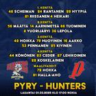 Porvoon Huntersin kokoonpano illan otteluun!