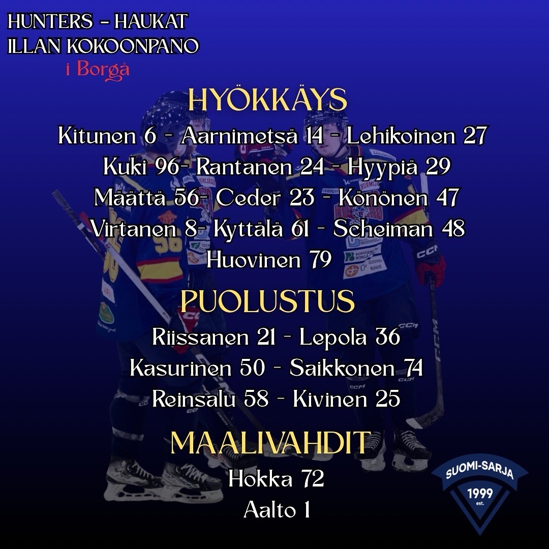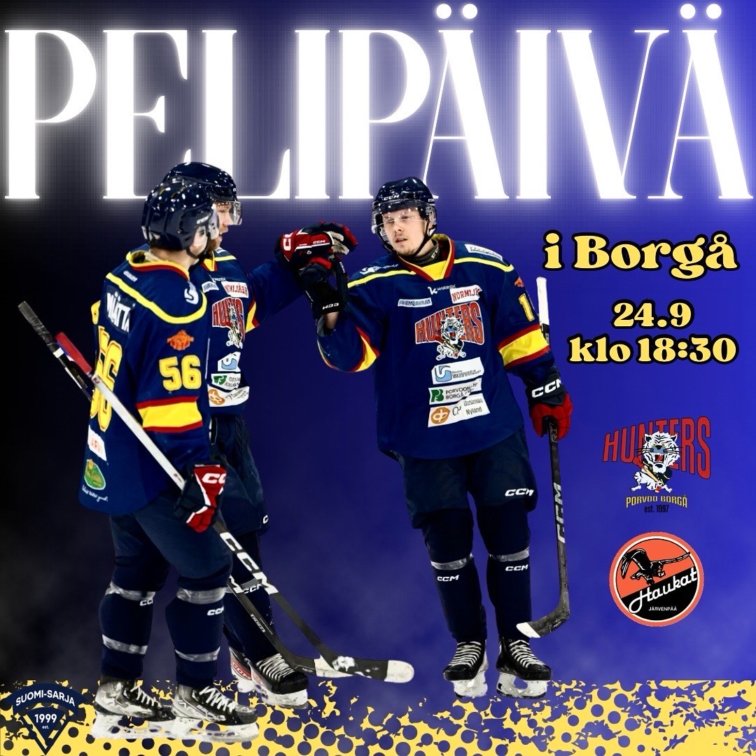 ♦ Hunters - Haukat ♦ Kokonniemen jäähalli, Porvoo ♦ Kiekko jäähän klo 18:30