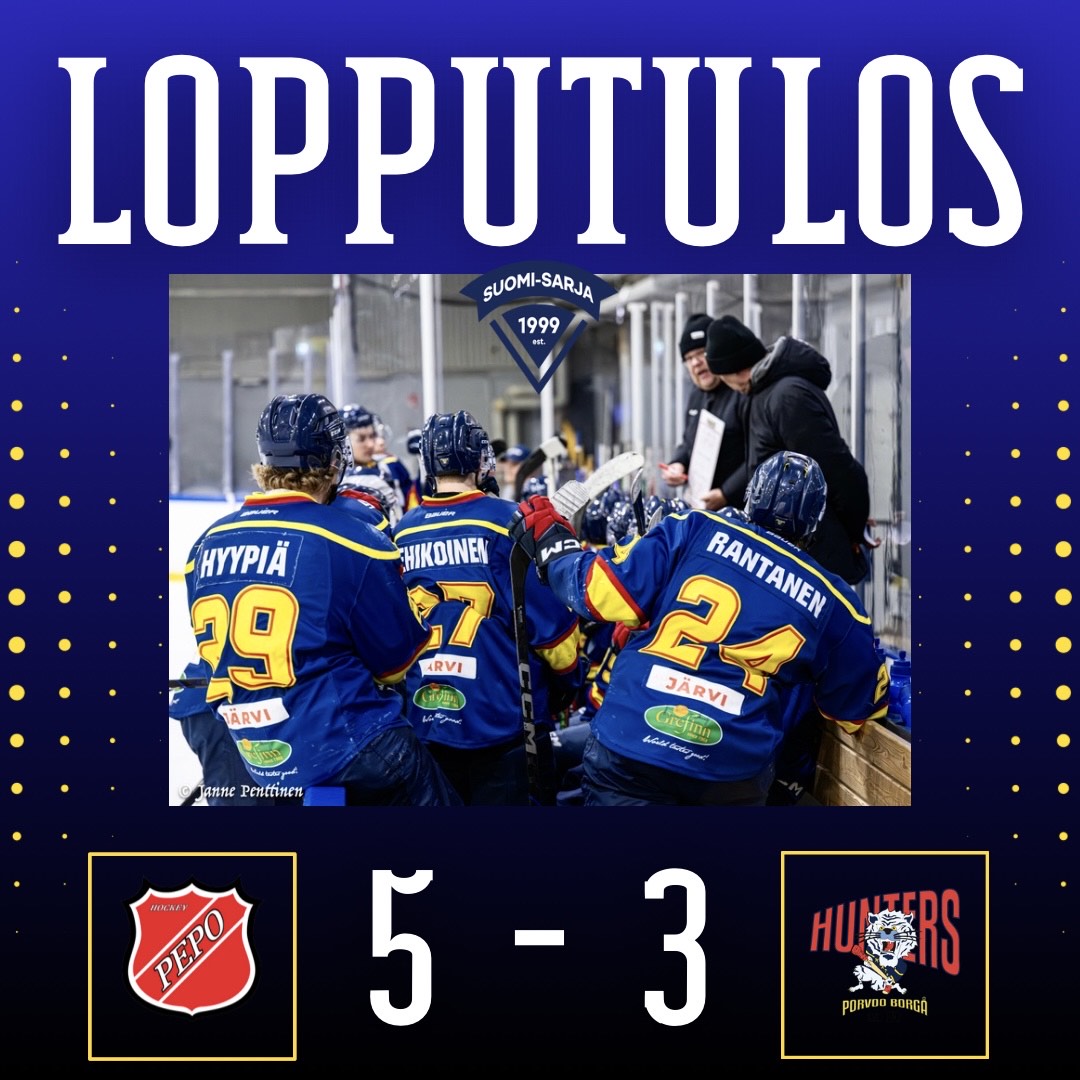 Tänään Huntersin maaleista vastasivat: • 0–1 Dani Scheiman – Topias Saikkonen – Roope Markula • 0–2 Leevi Hyypiä – Topias Saikkonen – Arttu Virtanen • 0–3 Leevi Hyypiä – Topias Saikkonen – Juho Rantanen
