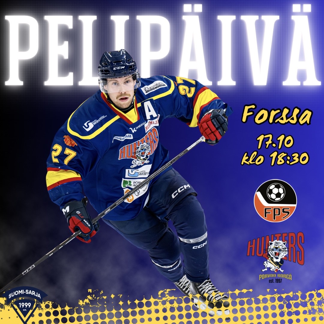 ♦ FPS vs. Porvoon Hunters ♦ Forssan jäähalli ♦ Kiekko jäähän klo 18:30