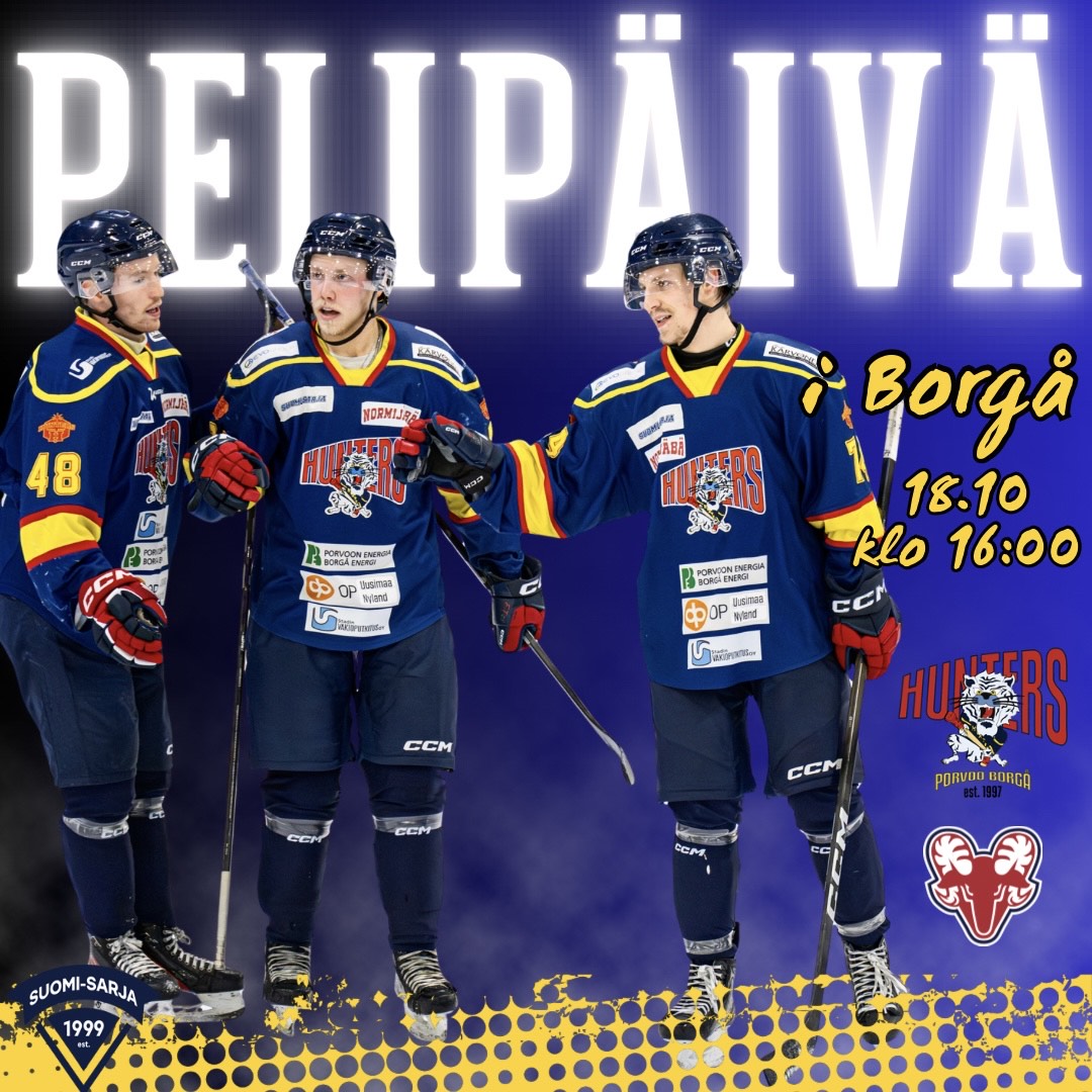 ♦ Hunters vs. SaPKo (Savonlinna) ♦ Kokonniemen jäähalli, Porvoo ♦ Kiekko jäähän klo 16.00
