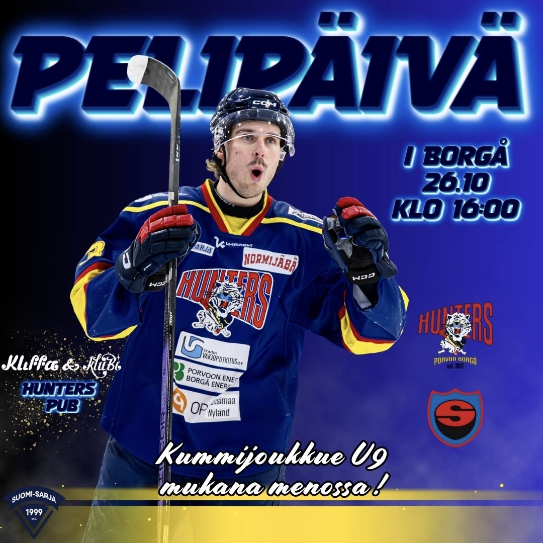 ♦ Hunters vs. S-Kiekko (Seinäjoki) ♦ Kokonniemen jäähalli, Porvoo ♦ Kiekko jäähän klo 16:00