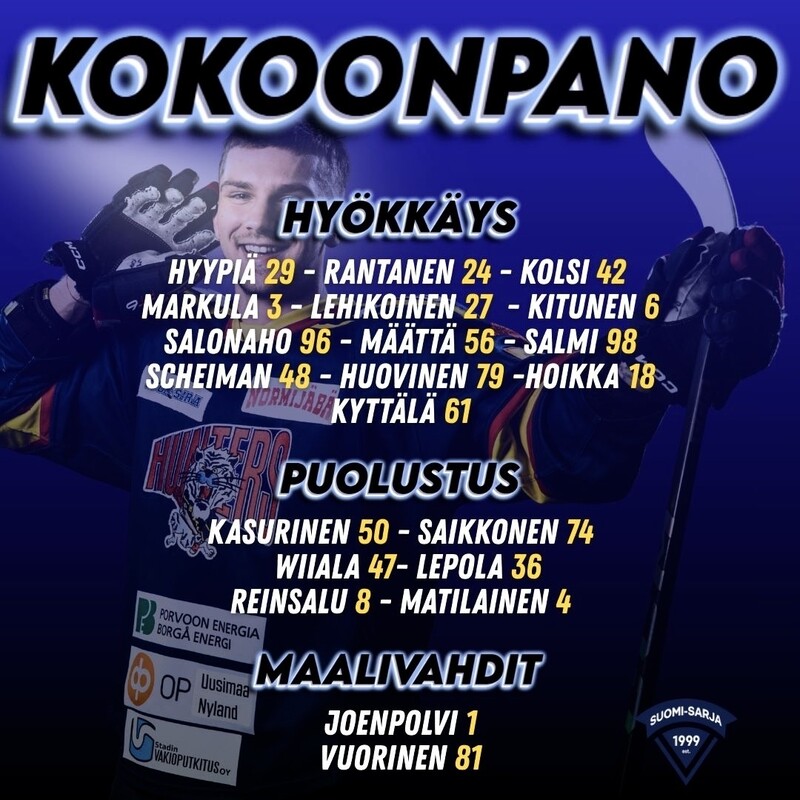 Tänään kotikaukalossa roihuaa, kun @haukatedari saapuu Järvenpäästä Porvooseen. Luvassa on fyysinen, vauhdikas ja tunteikas taistelu, josta Hunters lähtee nälkäisenä hakemaan hyvitystä. Jatkoaikahäviö Järvenpäässä? Ei ole unohtunut. Ei lähellekään.