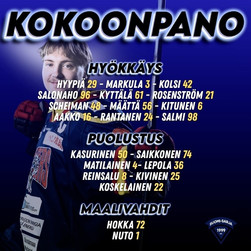 • Hunters vs. SaPKo (Savonlinna) • Kokonniemen jäähalli, Porvoo • Kiekko jäähän klo 16.00