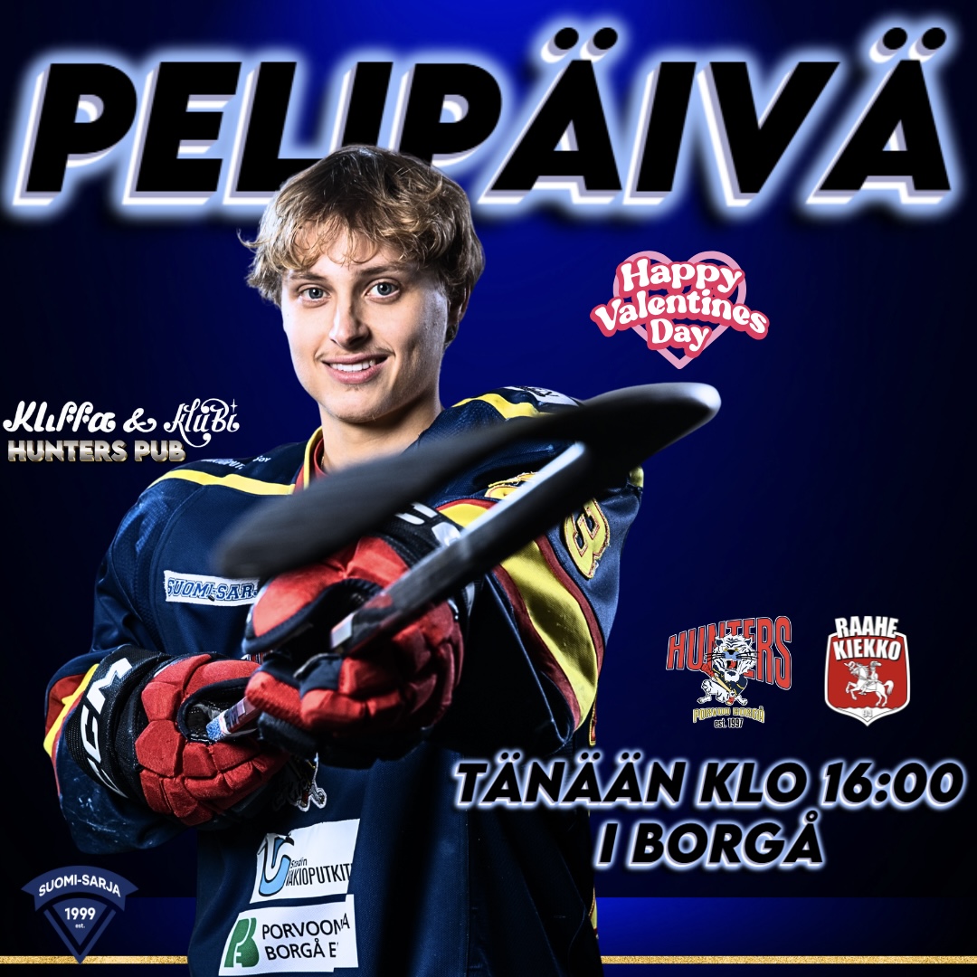 • Hunters vs. Raahe-Kiekko (Raahe) • Kokonniemen jäähalli, Porvoo • Kiekko jäähän klo 16.00