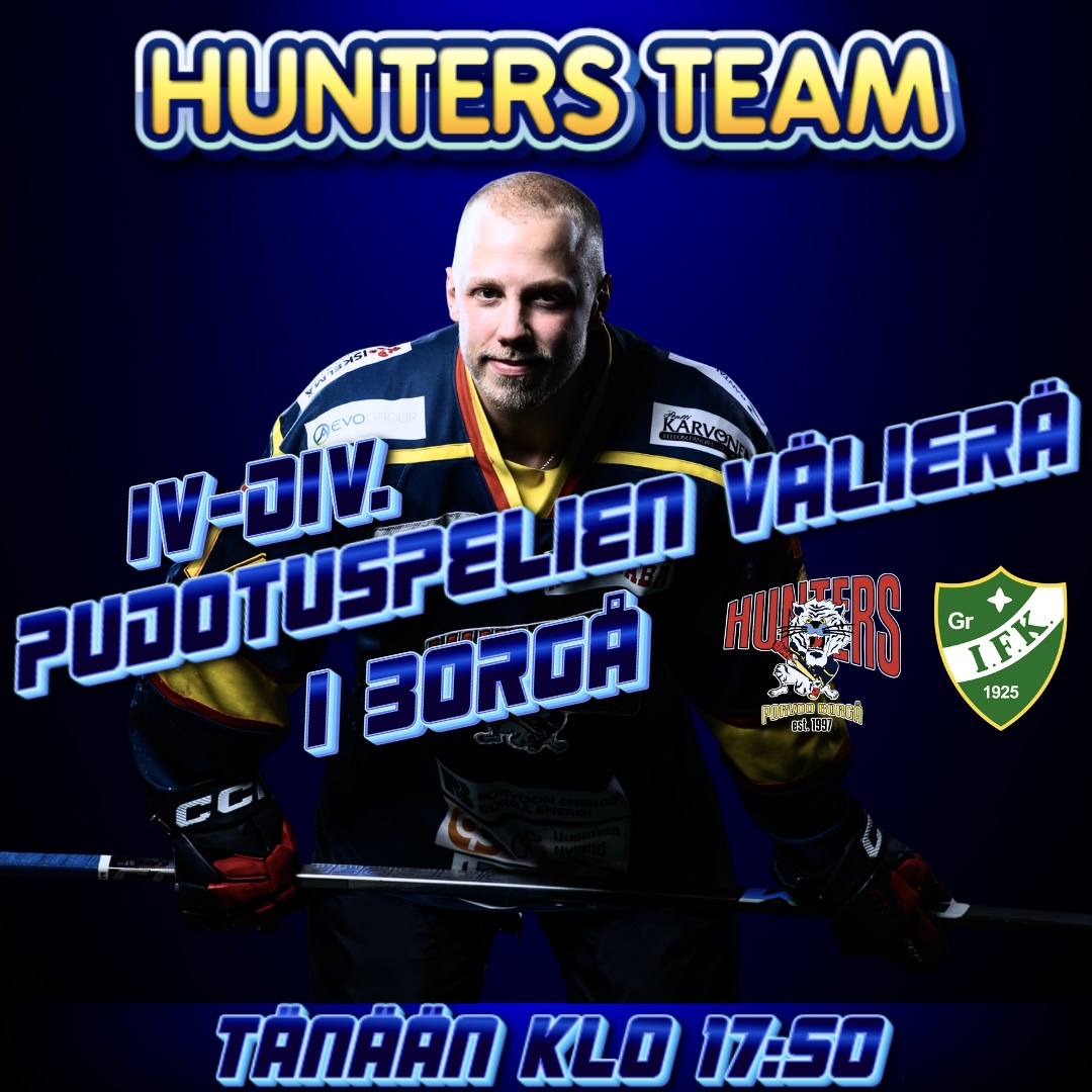 Tänään Porvoossa on tarjolla viihdyttävää ja tapahtumarikasta kiekkoa klo 17.50 alkaen, kun Hunters Team vs. GrIFK taistelee IV-divisioonan pudotuspelien välierässä paikasta finaaliin!
