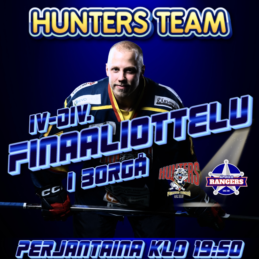 Nyt mennään! IV-divisioonan lohko 1:n pudotuspelit huipentuvat finaaliin. Otteluvoitot ovat Hunters Teamille 1–0